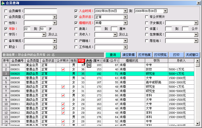 飞英婚介会员管理系统 - 会员查询