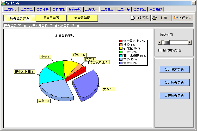 飞英婚介会员管理系统 - 统计分析